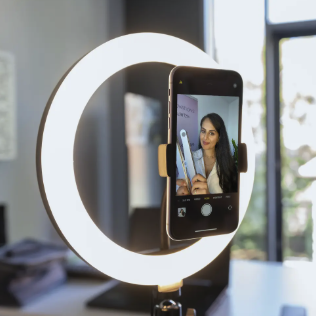 - Produkttype: Stativ med LED-ringlys og grønn skjerm