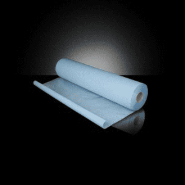 Engangsunderlag laget av preget papir dekket med plastikk belegg.