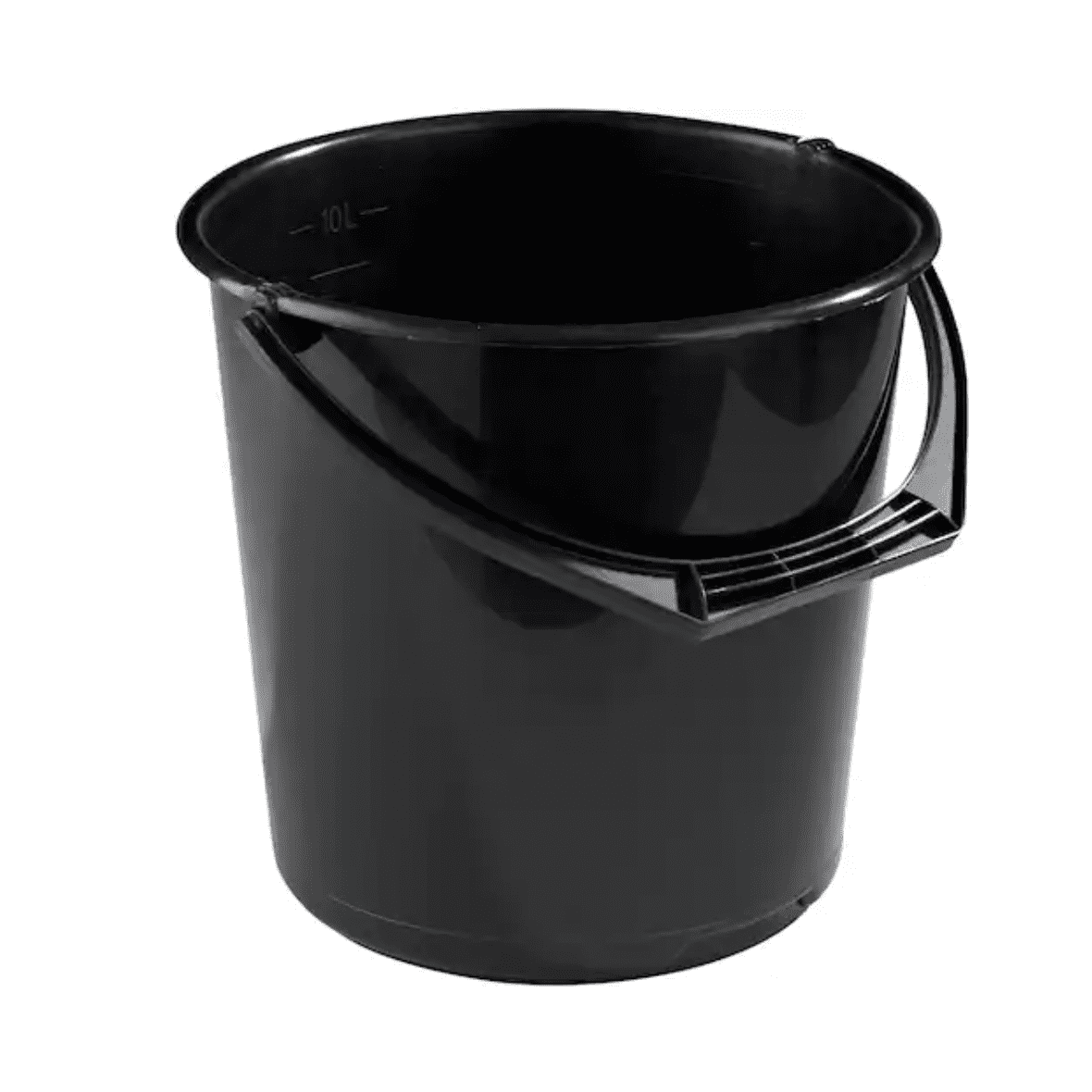 10 liter vaskebøtte med plasthåndtak. Bøtta har gradering innvendig og grep i bunnen for enkel tømming.
